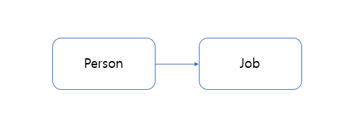 Job 클래스의 경우는 직업 이름을 프로퍼티로 가지고 있고, Person 클래스의 경우는 이름, 나이, 그리고 직업에 대한 정보를 프로퍼티로 가지고 있음을 볼 수 있다. 이처럼 Person 클래스는 Job 클래스를 참조하고 있을 때, Person은 Job에 대한 의존성이 있다라고 할 수 있다.