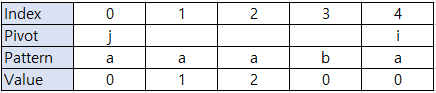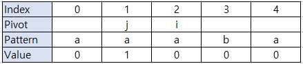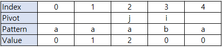 비교 검증을 하지 않아도 되는 부분은 입력받은 문자열 패턴에서 미리 정의해놓고 탐색 검증을 수행한다. 이 때 Prefix 함수를 이용한다. 아래에 제시된 함수의 설명에 있어서 j는 0부터 i는 1부터 인덱싱을 시작한다. 예시를 설명하기 전에 보다 이해하기 쉬운 설명을 위해 아래와 같이 의미를 정의하고 시작하도록 하자.
