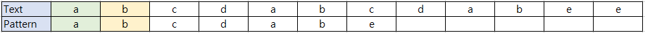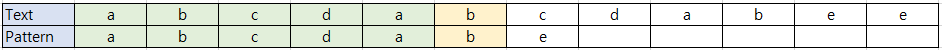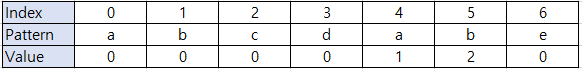 Prefix에 대한 정보를 얻었다면 본격적으로 KMP 알고리즘을 구현할 차례이다. abcdabcdabee라는 텍스트가 있고 abcdabe 라는 패턴이 있다고 하자. KMP 알고리즘은 먼저 abcdabe라는 패턴의 Prefix 정보를 구한다.
