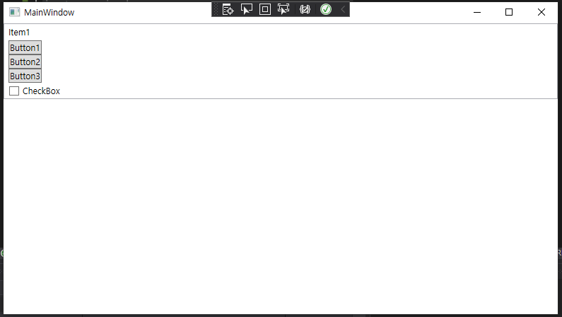 첫번째 Item은 Text를 직접 Content 객체에 할당했고, 두 번째 Item은 여러 버튼을 담은 StackPanel을 할당했다. 세번째 Item의 경우는 CheckBox Control을 직접 할당했다.
