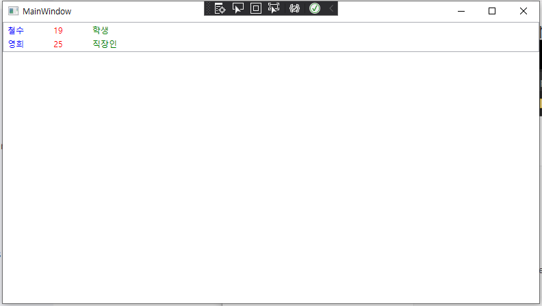 위의 예시처럼 ListBoxItem에서 표현될 방식을 ItemTemplate에 정의하여 ListBox를 나타낼 수 있다.